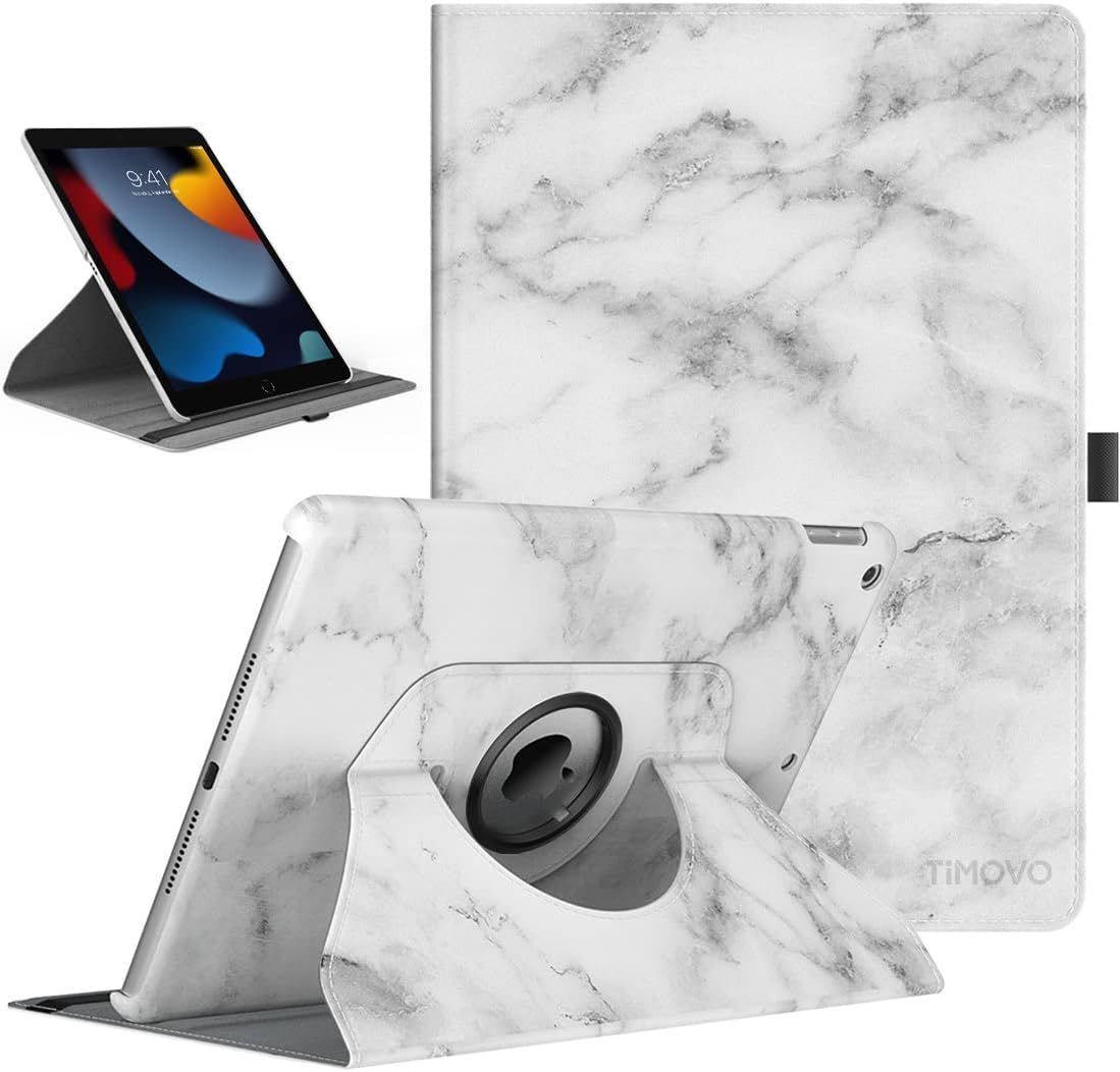 TiMOVO Coque pour Nouvel iPad 9ème Gén 2021, iPad 8ème Génération 2020, iPad 7ème Gén 10,2" 2019, Pivotant à 360 Degrés de Swivels Éveille/Veille Auto Retina Display Tablette - Marbre Blanc
