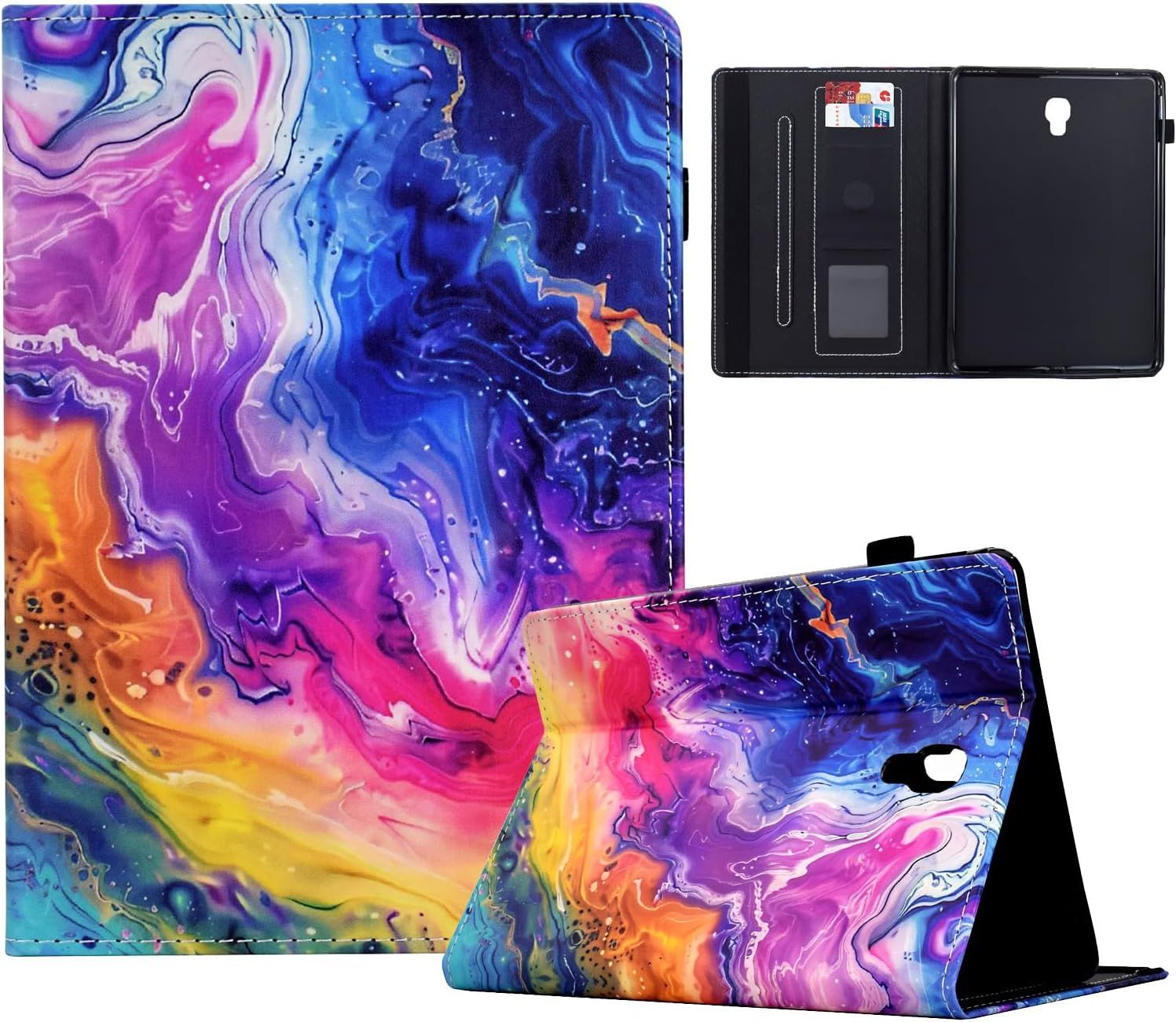 TEDTIKJT Tablette Coque pour Samsung Galaxy Tab A 10.5 2018 (SM-T590/T595) Etui PU Cuir Flip Cover Support Protection Housse pour Samsung Galaxy Tab A 10.5 2018 Cover,Marbre Galactique Violet Bleu