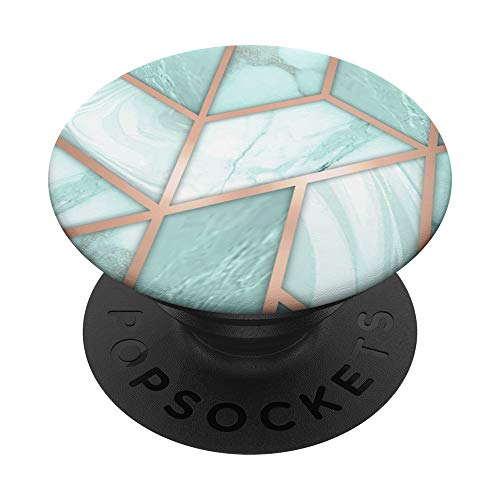 PopSockets Effet-Marbre-Vert-Géométrique - Dessin-Or-Vert-Menthe PopSockets PopGrip - Support et Grip pour Smartphone/Tablette avec un Top Interchangeable