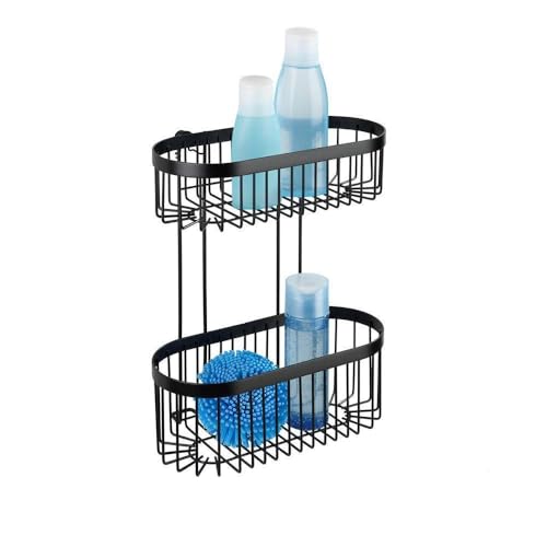 WENKO Étagère Murale à 2 Niveaux Classic Plus Noir Tablette de Rangement Murale, étagère de Salle de Bain avec Protection antirouille de qualité supérieure Noir