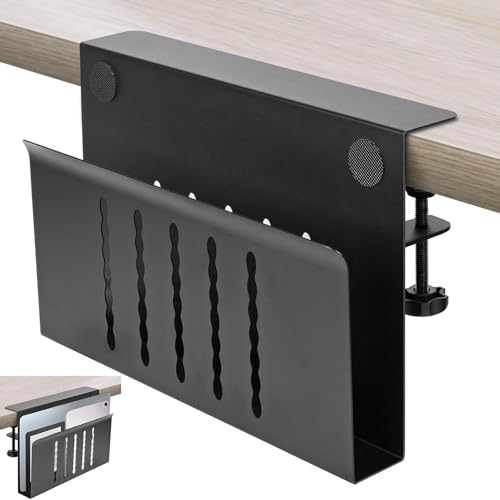 Hjatirace Organiseur de bureau latéral, étagère flottante en métal, sans perçage, pince sous le bureau, étagère de rangement pour tablette, ordinateur portable, ordinateurs portables