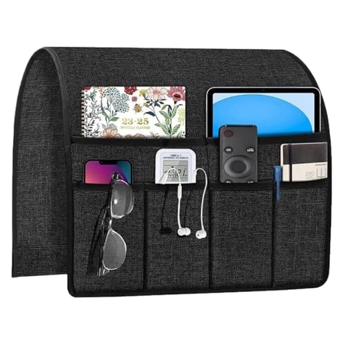 Namvo Organiseur pour accoudoir de canapé, chaise, sac de rangement antidérapant, convient pour tablette, téléphone, tablette, livre, magazines, télécommande TV (Noir)