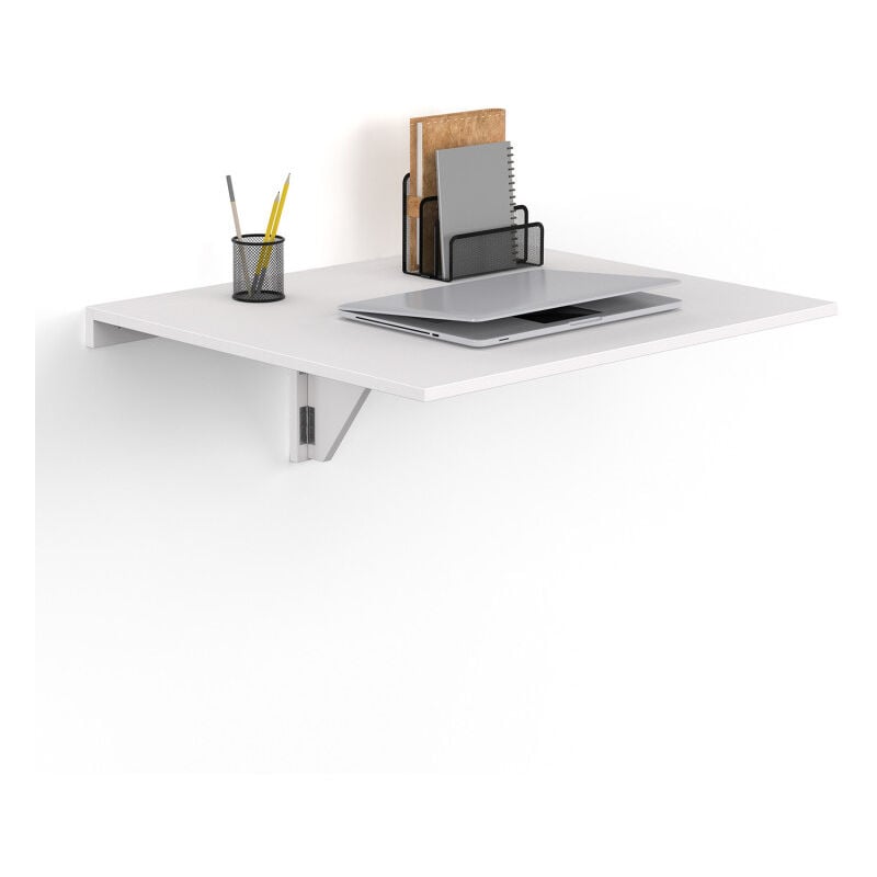 Table Pliante Murale Rabattable en Bois, Tablette à Manger Avec Support en Métal, Bureau Pliable pour Salon/Chambre (Blanc, 100*40cm/39*15.7in)