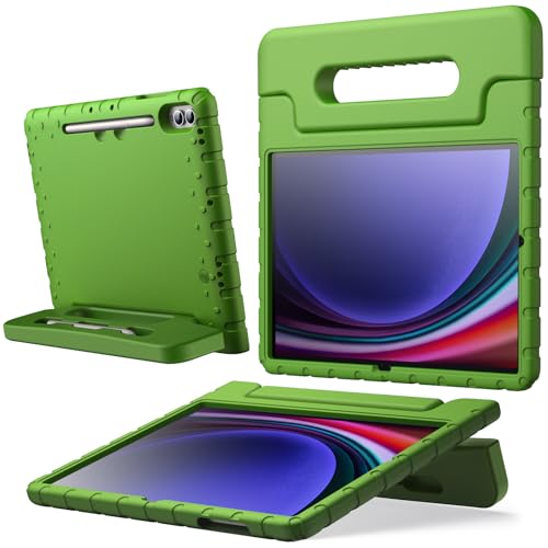 JETech Enfant Coque pour Samsung Galaxy Tab S10 Plus/Tab S9 Plus 12,4 Pouces, Étui Housse de Tablette Légère Antichoc avec Support Poignée, Soutien Chargement du S Pen (Vert)