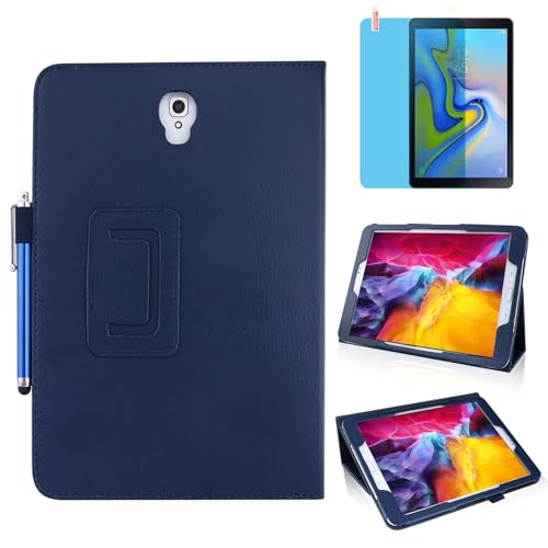 Tablettes Coque pour Samsung Galaxy Tab A 10.5 inch 2018 (SM-T590 T595 T597),Full De Protection Multi-Angle Debout Etui Cuir Housse avec Stylus Pen,Protecteur Film (Blue)