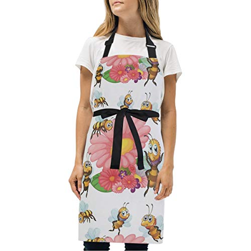Sawhonn Fleur d'abeille De Dessin Animé Tablier de Cuisine Sangle Réglable Tabliers de Chef BBQ Jardin Café pour Serveuse Serveur Enfant avec 2 Poches