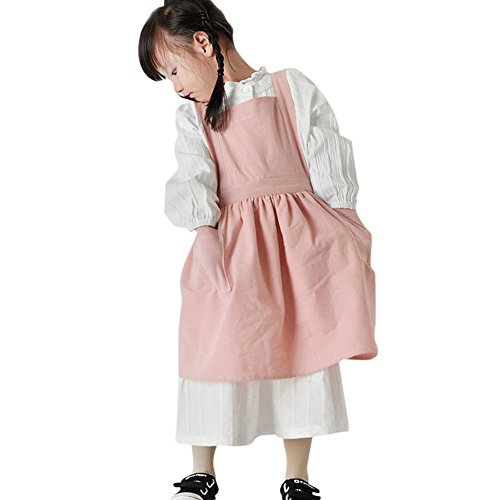 Tablier Enfant en Coton Blouse Doux Fille Garçon Tablier Cuisine Sans Manches pour Peinture Cuisson Manuelle Classe École Poterie Barbecue Artistes Tabliers Anti-Usure Cadeau de Noël