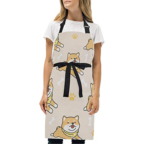 Mignon Chien Shiba Inu Tablier de Cuisine Sangle Réglable Tabliers de Chef BBQ Jardin Café pour Serveuse Serveur Enfant avec 2 Poches