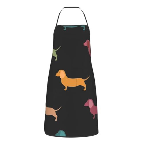 Unisexe Tablier De Cuisine Jolis Chiens Teckels Tablier De Cuisine pour Homme Et Femme Personnalisé avec Poche Chef Tabliers, pour Artisanat, Barbecue, Restaurant, 52x72cm