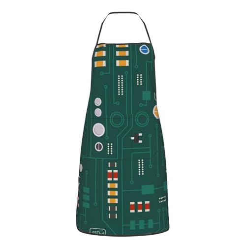 Tablier De Cuisine Circuit Électronique avec Diodes Tablier De Cuisine pour Homme Et Femme Professionnel Imperméable Tabliers BBQ, pour Anniversaire, Fête des Mères, Cuisson, 52x72cm