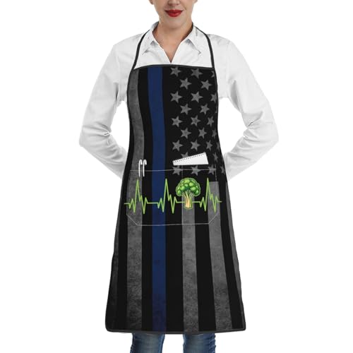 Tablier De Cuisine Brocoli, Légumes, Battement De Cœur Tablier De Cuisine pour Homme Et Femme Professionnel avec Poche Chef Tabliers, pour Café, École, Barbecue, 52x72cm