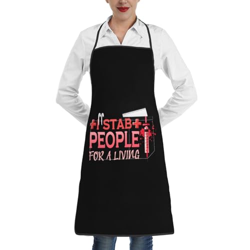 Tablier De Cuisine Je Poignarde des Gens pour Gagner Ma Vie. Infirmière. Tablier De Cuisine pour Homme Et Femme Imperméable avec Poche Chef Tabliers, pour Travail, Barbecue, Café, 52x72cm