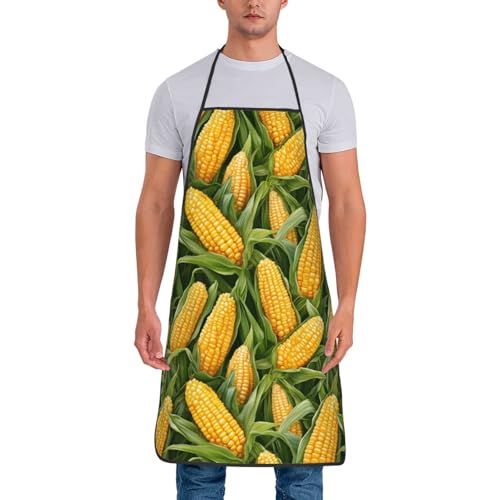 Unisexe Tablier De Cuisine Maïs Jaune Vif Vert Tablier De Cuisine pour Homme Et Femme Personnalisé avec Poche Tabliers BBQ, pour Cuisson, Restaurant, Jardinage, 52x72cm
