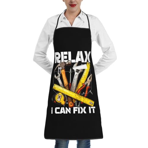 Tablier De Cuisine Détends-Toi, Je Peux Le Réparer. Tablier De Cuisine pour Homme Et Femme Personnalisé avec Poche Chef Tabliers, pour Cuisson, Barbecue, Jardinage, 52x72cm