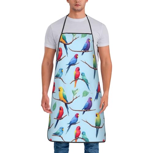 Unisexe Tablier De Cuisine Perroquet Bleu Aquarelle Mignon Tablier De Cuisine pour Homme Et Femme avec Poche Drôle Tabliers BBQ, pour Cuisson, La Pâtisserie, Café, 52x72cm