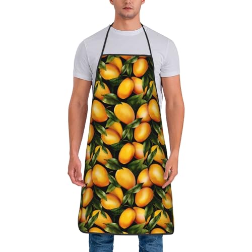 Unisexe Tablier De Cuisine Mangue Jaune Mignonne Tablier De Cuisine pour Homme Et Femme Imperméable avec Poche Chef Tabliers, pour Travail, Fête des Mères, Artisanat, 52x72cm
