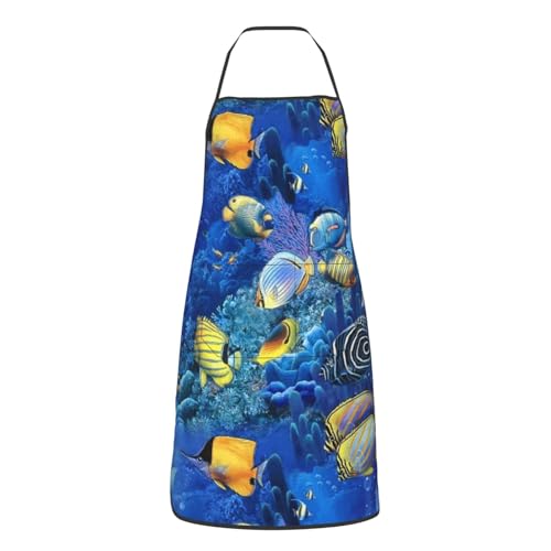 Tablier De Cuisine Imprimé Poissons Tropicaux Tablier De Cuisine pour Homme Et Femme avec Poche Drôle Tabliers BBQ, pour Barbecue, Restaurant, Fête des Mères, 52x72cm