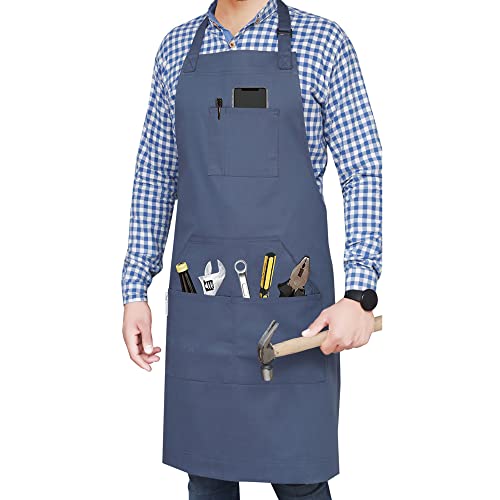 Ruvanti Tablier de travail bleu durable de qualité professionnelle pour homme et femme Tablier de chef tablier de cuisine, barbecue, barbier, tablier en toile, confortable, enrichi en coton. Attaches