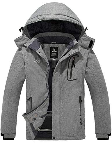 Wantdo Homme Manteau d'hiver Chaud Veste de Snowboard avec Doublure Veste Imperméable pour Voyage Travail Veste Isolée avec Capuche Amovible Gris M