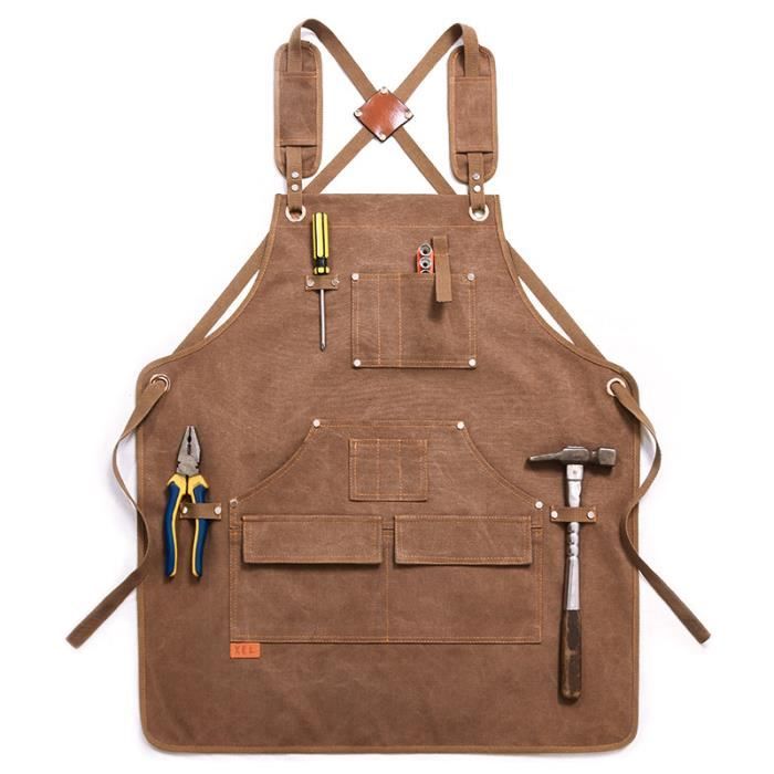 FACAIIO Tablier de travail en toile épaisse pour homme et femme, bretelles croisées dans le dos, double couture, convient pour la menuiserie, le jardinage, la cuisine