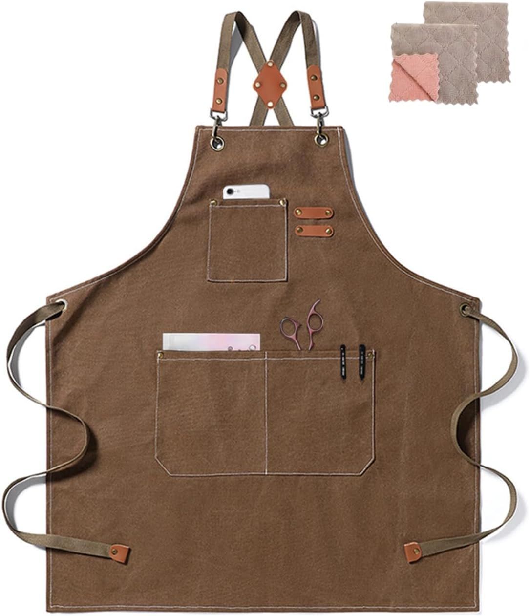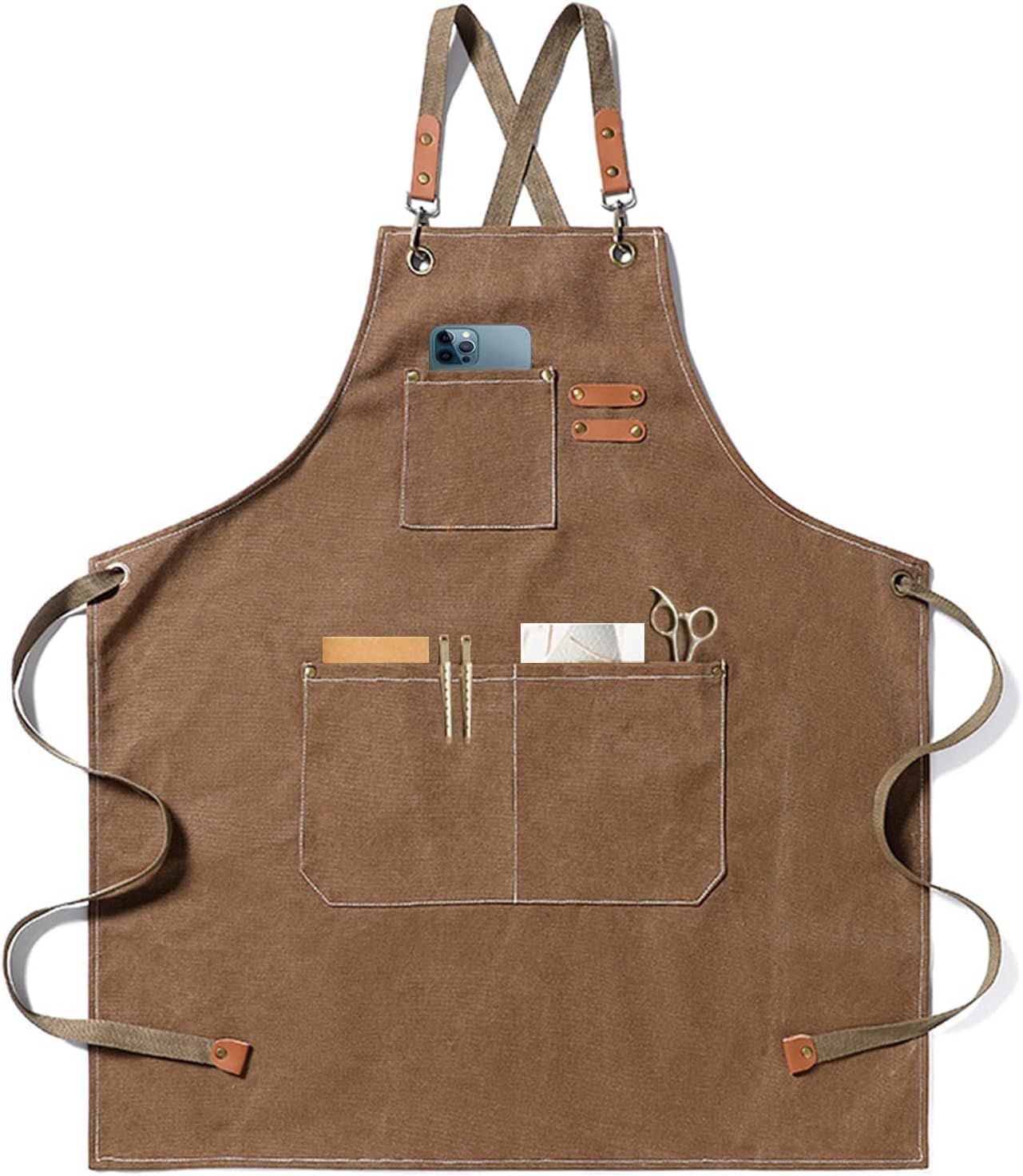 FACAIIO Tablier de travail en toile épaisse pour homme et femme, bretelles croisées dans le dos, coutures doubles, convient pour la menuiserie, le jardinage, les cafés et divers scénarios