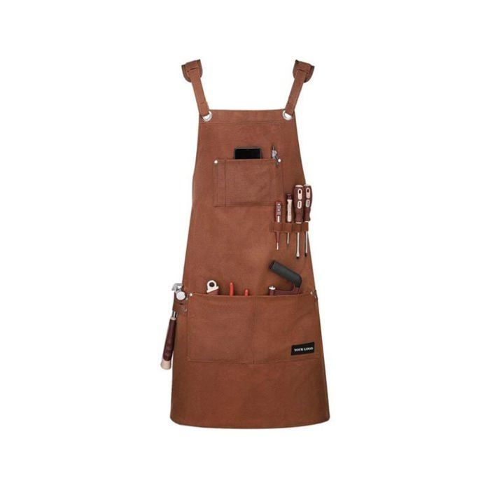 Tablier À Outils Pour Homme, En Lin Ciré, Tablier De Menuisier Robuste Pour Atelier De Travail Du Bois Et Cuisine