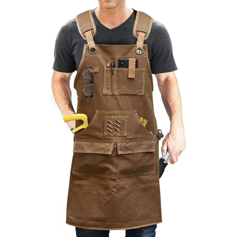 Gotrays - Tablier à bavette réglable, tablier à outils d'atelier avec sangles croisées et sacs à outils Tablier de travail en toile Tablier d'artiste