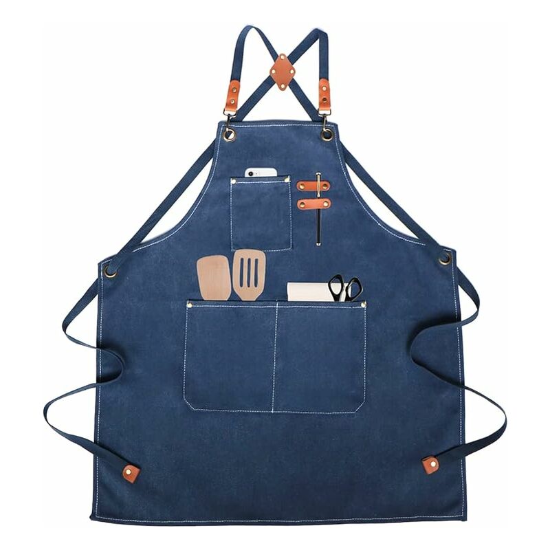 Jeanerlor - Tablier de travail d'artiste en coton denim avec poches, bretelles croisées et réglable, bleu denim, taille M