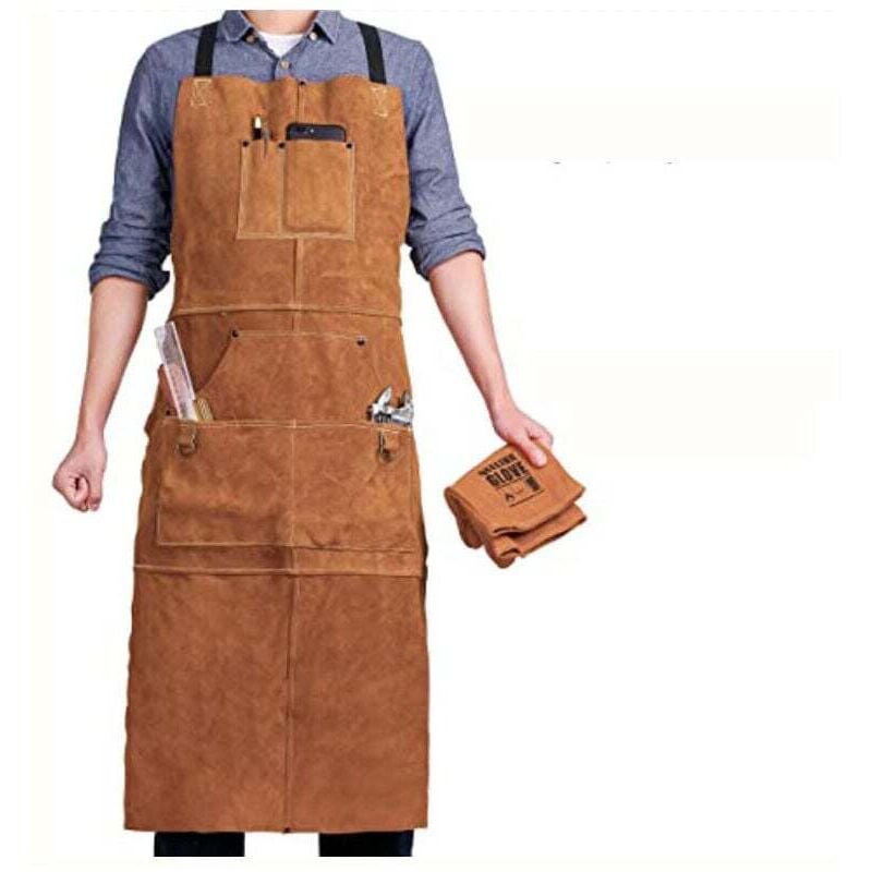 Jamais UTILISÉ]Tablier de Soudure, Tablier de Travail en Cuir de Vachette avec 6 Poches, 24'x 36' Tablier de Cuisine Multifonctionnel, Brets