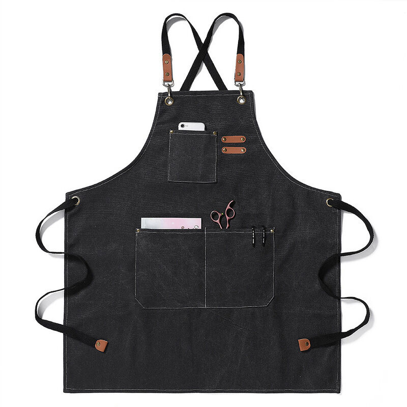 Jeanerlor Tablier de travail de coiffeur en toile cirée avec 10 poches, tablier résistant à l'eau pour femme, bretelles croisées dans le dos, tailles S-M (noir)
