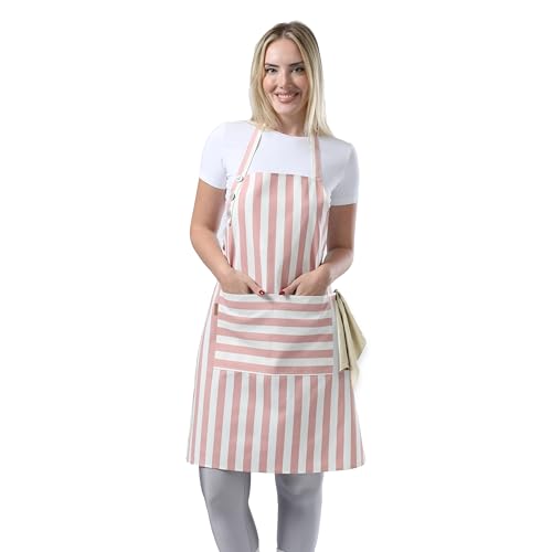 TOSHEX Tablier de cuisine en coton résistant aux gouttes d'eau avec poches pour femme et homme (1, rose poudré)