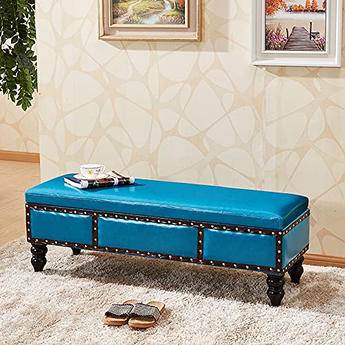 QYMYOZ Tabouret Repose-Pieds/Baignoire à Chaussures pour Salon, Couloir ou entrée, Banc de Rangement avec Couvercle relevable, Assise rembourrée en Similicuir Bleu, 70 x 40 x 4