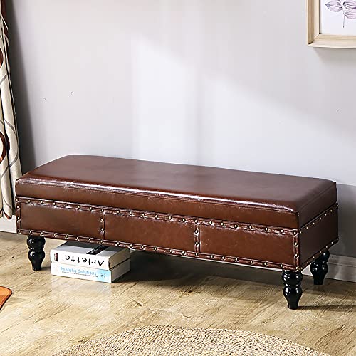 QYMYOZ Tabouret Repose-Pieds/Baignoire à Chaussures pour Salon/entrée, Banc de Rangement avec Couvercle relevable, Assise rembourrée en Similicuir, Marron foncé, 60 x