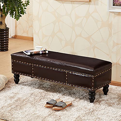 QYMYOZ Tabouret Repose-Pieds/Baignoire à Chaussures pour Salon/entrée, Banc de Rangement avec Couvercle relevable, Assise rembourrée en Similicuir, Marron foncé, 80 x