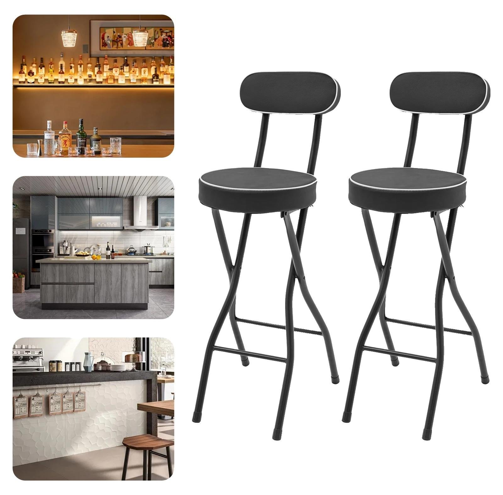 Tabouret pliable avec assise rembourrée, dossier en rotin et repose-pieds pour bar ou petit déjeuner