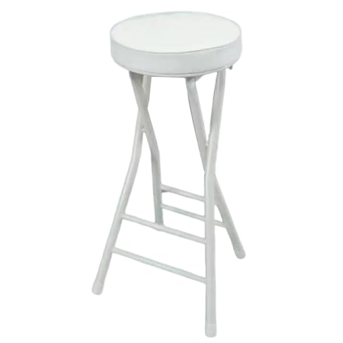 Tabouret de Bar Pliant Portable, 63cm Tabouret Rond sans Dossier, Chaise Haute Rembourrée pour Cuisine/Extérieure/Magasin/Café (Color : White)