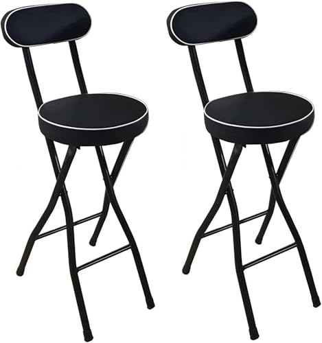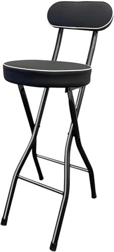 XJBTBA Tabouret de Bar Pliant Rond rembourré Noir avec Dossier Petit déjeuner Portable pour Cuisines magasins Jardinage Haut (Hauteur du siège 70 cm/27,5 Pouces)