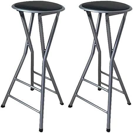 XJBTBA Tabouret de Bar Pliant Rond rembourré sans Dossier Blanc - Tabouret de Bar de Cuisine, Aucun Assemblage requis, Portable (Noir)