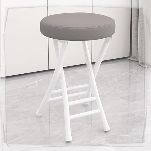 Tabouret Pliant Rembourré Rond Rembourré 20 en Hauteur De Comptoir Tabouret Pliable sans Dossier Tabouret De Bar Pliant Portable pour La Cuisine à La Maison Camping en Plein AI, Light Gray, One Size