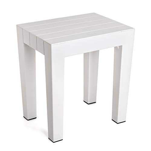 Tatay Tabouret Rectangulaire Lombok, Polypropylène, sans BPA, Finition effet bois, Protection anti-UVA, Max 130kg. Adapté a intérieur et extérieur, Blanche. Dimension 38x29x41cm