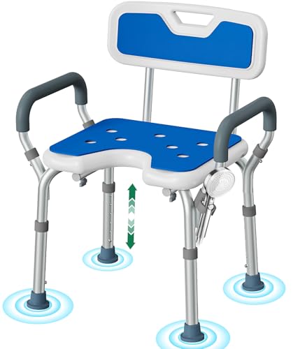 Luckfaith Chaise de Douche Réglable avec Accoudoirs – Siège de Douche Antidérapant en Forme de U avec Dossier et Accoudoirs Rembourrés, Tabouret de Bain Léger pour Seniors et Personnes Handicapées