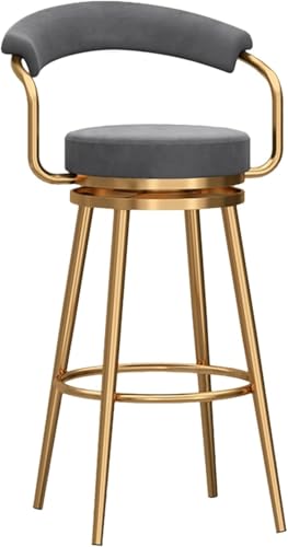 XJBTBA Tabouret de Bar pivotant à Hauteur de comptoir avec Dossier Creux, siège rembourré en Velours, Pieds en métal doré, Haut, élégant (Gris, Hauteur 65 cm)