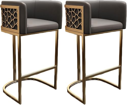 XJBTBA Tabouret de Bar en Cuir PU, Hauteur de comptoir, tabourets de Bar Vintage avec Pieds en métal Repose-Pieds Hauts pour Cuisine, pub, café (Gris, 65 cm)