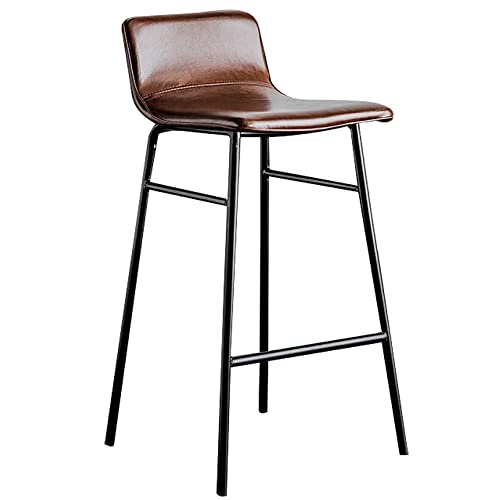 Tabourets de Bar en Cuir PU, chaises de Tabouret de Bar rembourrées à l'île avec Dossier Bas Jambes en métal, Parfait pour Les sièges de la Hauteur du Bar de Cuisine (brun-1ps, 65 cm)