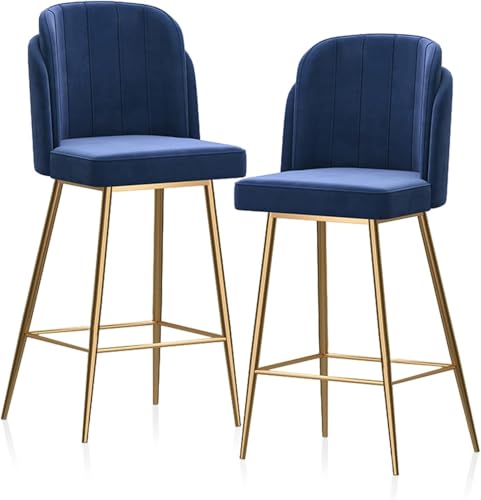 XJBTBA Tabouret de Bar Chaises de Bar Tabourets en Velours, Hauteur de comptoir Confortable pour la Maison (Bleu, 65 cm (25,6 Pouces))