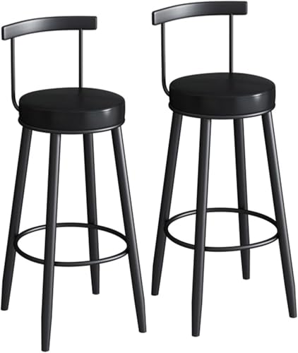 LHNLY-Chaise Tabourets de Bar Maison, Tabouret de Bar Hauteur 65cm / 75CM, Assise Chaises de Bar Hautes Tabouret de Cuisine avec Dossier et 4 Pieds Moderne Elegance Design, Noir (65cm*2)