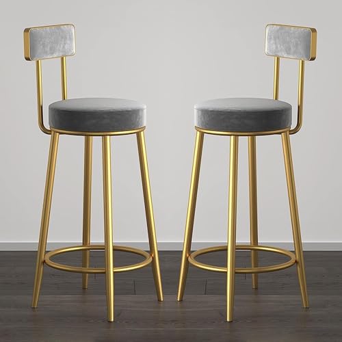 XJBTBA Tabouret de comptoir de Cuisine, chaises de Bar, Lot de 2 tabourets rembourrés en Velours avec Dossier, Petit-déjeuner, Salle à Manger (Gris, Hauteur : 65 cm)