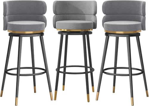 XJBTBA Tabouret de Bar pivotant en Velours Noir avec Dossier Bas – 1 Tabouret de Bar à Hauteur de comptoir, Base en métal pour îlot de Cuisine (Gris, Hauteur 65 cm)