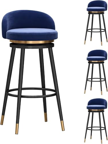 XJBTBA Tabouret de Bar pivotant en Velours Noir avec Dossier Bas – 1 Tabouret de Bar à Hauteur de comptoir, Base en métal pour îlot de Cuisine (Bleu, Hauteur 65 cm)