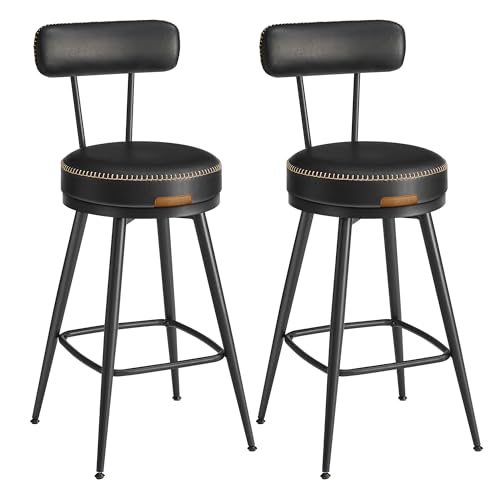 VASAGLE EKHO Collection - Tabouret de Bar Pivotant à 360°, Lot de 2, pour Cuisine, Rembourré, Dossier, PU avec Coutures, Style Moderne Mi-siècle, Hauteur 65 cm, Bar, Noir d'encre LBC089B01